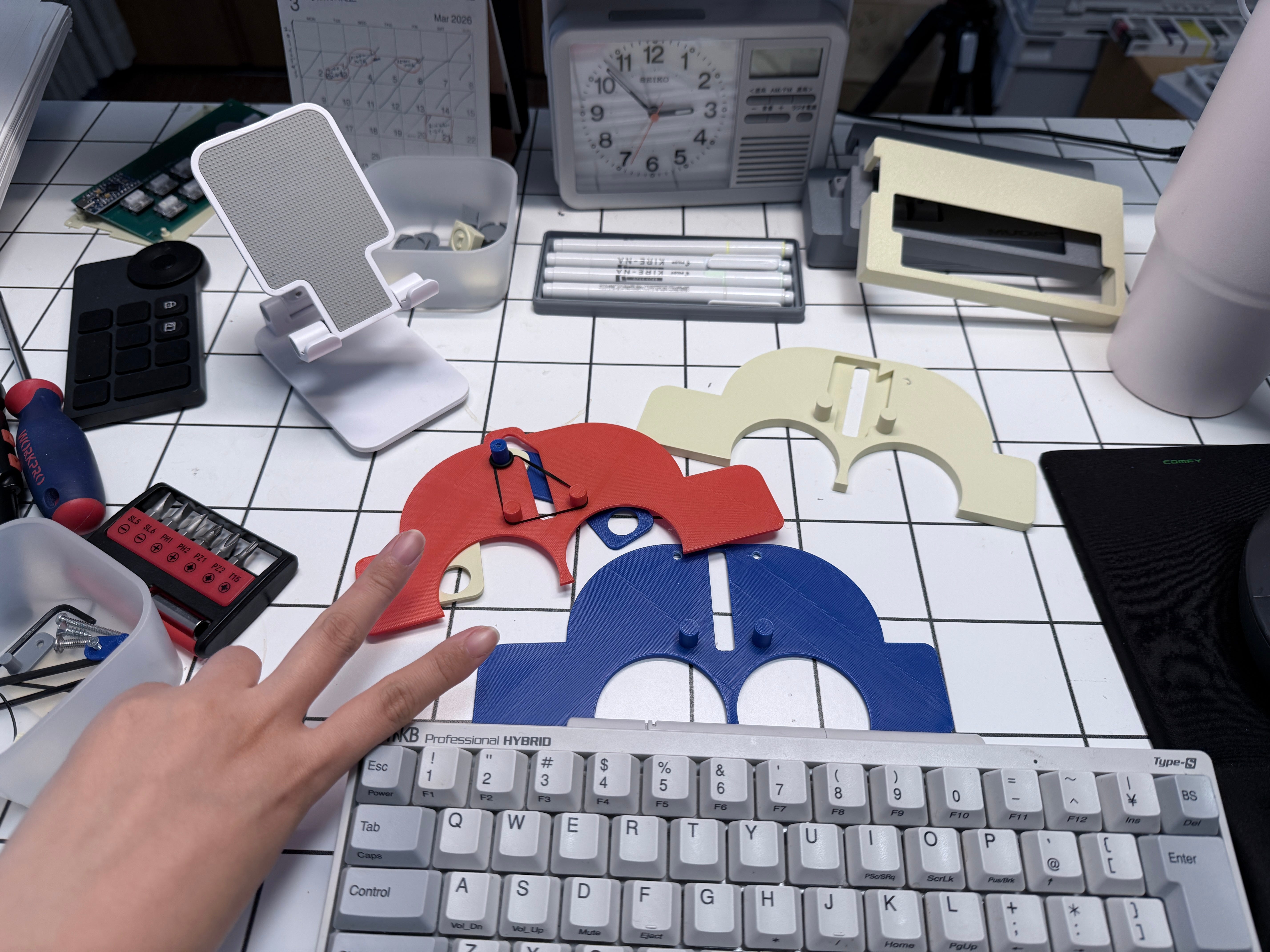 子供が遊べるおもちゃが母もつかえるものにトランスフォームしたらおもしろいよね。と思ったので、ミニカーのタイヤの部分がポップアップして小顔ローラーになるアイテムを設計しています。ばねをつかわずに、ゴムでなんとかできないかなあといろいろ調べて、自分なりに機構をつくった。あたし、こういうこともできるようになったよ。おかあさん、あたし、立派な大人になったよ!
