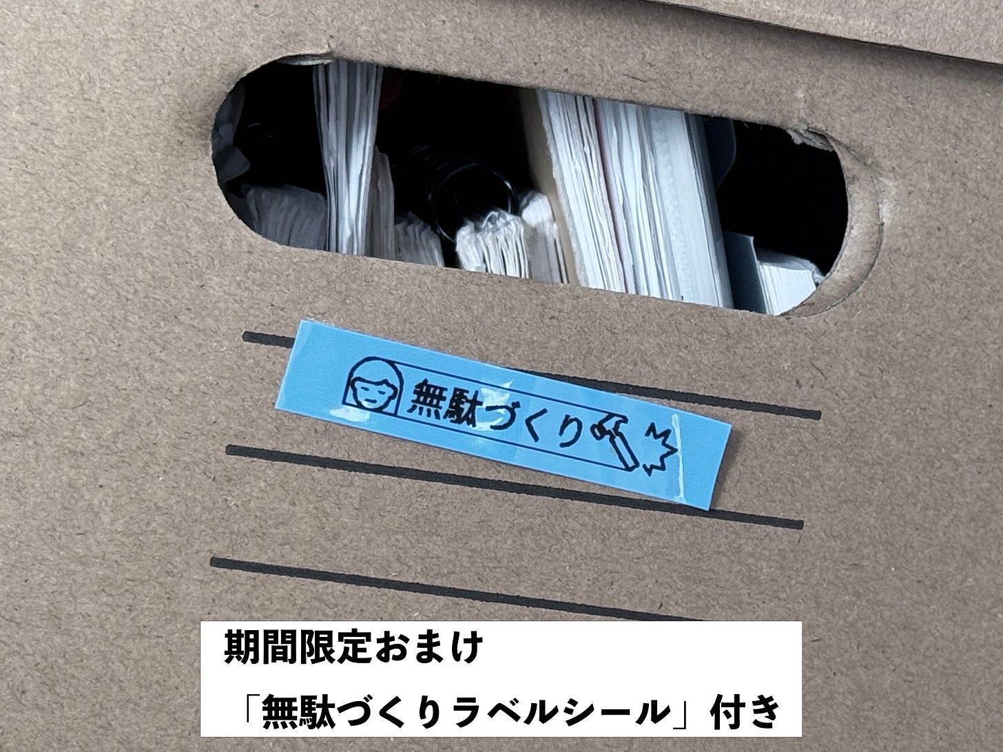 春のキャンペーンということで、今買うと、無駄づくりロゴのラベルシール(テプラ)がついてきます。1つにつき1枚。